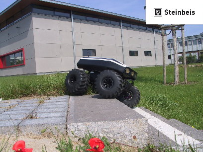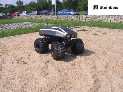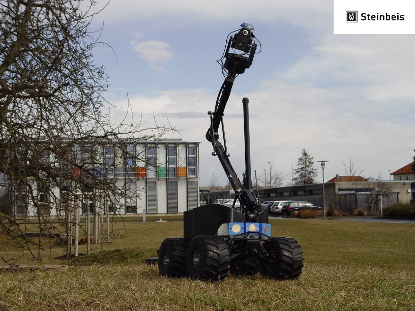 Outdoor MERLIN der Universität Würzburg Im Rahmen eines Forschungsprojekts entwickelte das Steinbeis Transferzentrum ARS in Kooperation mit der Julius-Maximilian-Universität Würzburg unter Leitung von Prof. Klaus Schilling einen autonom bzw. teilautonom fahrenden Roboter namens Outdoor MERLIN. Er dient (z.B. der Feuerwehr) zur Erkundung von gefährlichem Gelände. Hierfür kann die Fahrzeugplattform mit unterschiedlichsten Sensoren (Neige-, Ultraschall-, Wärmebild-, GPS, etc.) und Kameras ausgerüstet werden. Über eine leistungsfähige WLAN-Verbindung kann das Allrad-Fahrzeug per Live-Video auch von einem Operator gesteuert werden, der durch mehrere Fahrassistenzsysteme unterstützt wird.