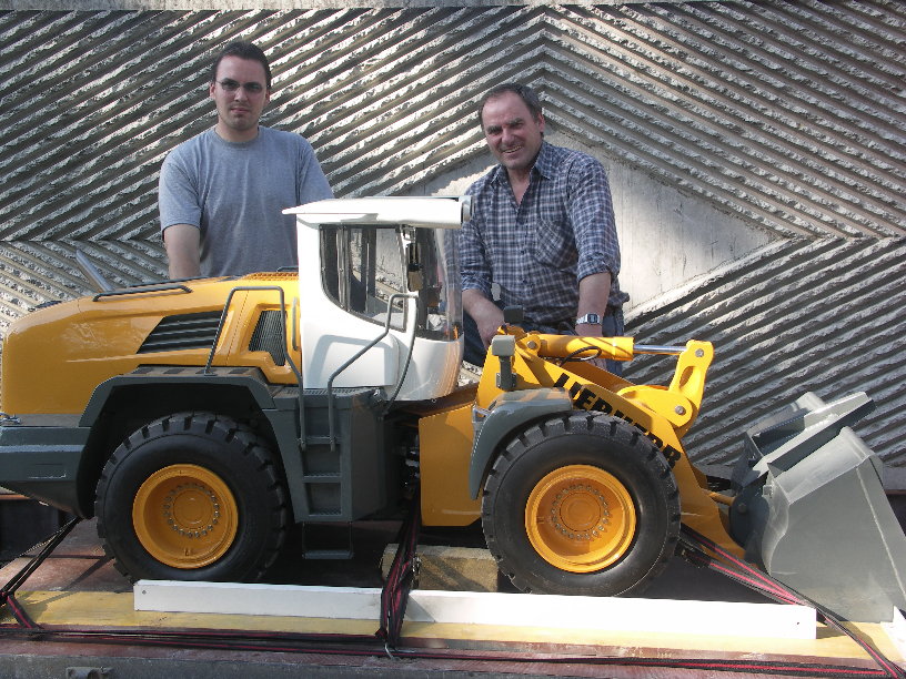 Der Nachbau eines Radladers im Maßstab 1:4 von Gerhard Süß ist schlicht gesprochen der Hammer! In einer unglaublichen Detailtreue und einer von ihm geschätzten Bauzeit von weit mehr als 1.000 Stunden könnte man dieses voll funktionsfähige Modell für einen echten Radlader halten, der sich zwischen Riesen bewegt ;-) Gerhard Süss und sein Sohn haben alles selbst gebaut. Dafür kam durchweg Stahlblech von minimum 3mm Dicke zum Einsatz. Im Endergebniss ergab diese Bauweise ein absolut solides Gerät mit einem Gewicht von mehr als 400kg.