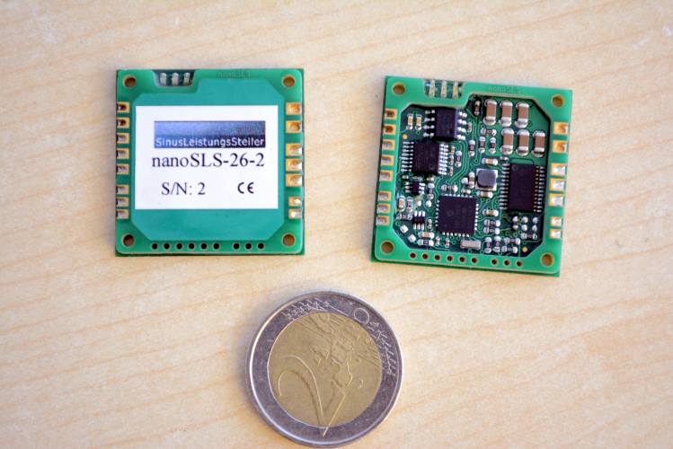 In this section we provide frequently news on development and progress ... Details about the SLS are found here (click...) 02.11.2018: The nanoSLS-26-2 should become our smallest sine-ESC so long ... But finally it turned out as too weak and unflexible for both customers applications it was designed for - so it will stuck in prototype status. Its power stage is realized by a DRV10987S from Texas-Instruments. Communication links (RS232, CAN-Bus) are managed by a ĩC. SLS-Wiindows-Monitor already supplies access to all DRV10987Sīs registers and offers motor-setups to be saved to file. The DRV10987S driver is not compatible to our normal cSLSi/SLSi-hardware, so the nanoSLS can only supply a subset of functionality e.g. it doesnīt have internal trace memory, canīt handle torque-control, etc. We will not continue development for the nanoSLS! We can offer available prototype modules as a "3rd-party DRV10987S-Starterkit/Evalboard" (EUR 85,- each + VAT)